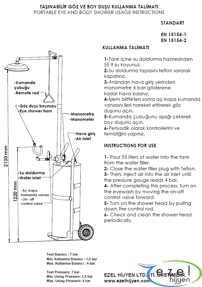 -Sabit göz/yüz yıkama sistemlerinin kurulamayacağı uzaklıktaki çalışmalar ve geçici çalışmalar sırasında ve muhtelif tehlikelerin olabileceği yerlerde kullanılmak üzere tasarlanmıştır.